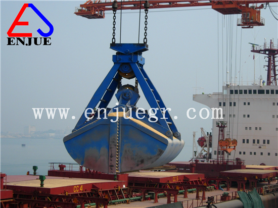 The clamshell grab is mainly used to discharge all kinds of powder and granular bulk cargo materials. The overall structure design of grab is light, with large grasping ratio, strong closing force and high material filling rate. Usually used with tower crane, ship crane, ship unloader and other types of cranes, widely used in wharfs, steel mills, power plants, ships and other occasions.